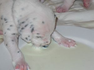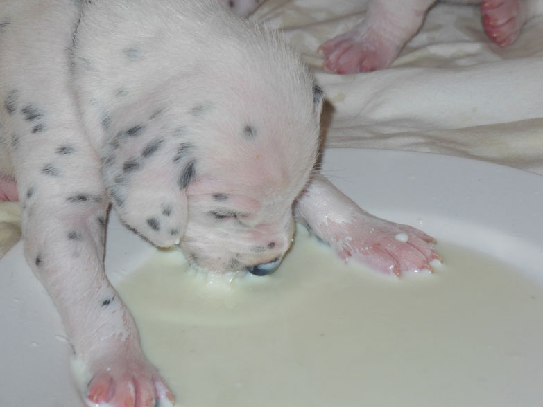 Cicero war der 6. Welpe in diesem 10-er Wurf. Markantes Merkmal war das schwarz umrandete linke Auge und der eine Tupfen auf der Stirn 😉